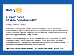 HOW WE CAN HELP: Your Endowment/Major Gifts Advisers Team provides districts with tailored guidance on Endowment and Major Gifts including assistance in developing fundraising strategies for encouraging major gifts, planned gifts, and bequest commitments. We provide strategic consulting to support major gift planning, endowment programs and million dollar dinners. We are available for on- site training of district teams, support of district initiatives, events, and interaction with individual donors within the districts.